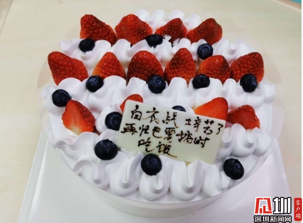 也有動(dòng)情的時(shí)刻。有不知名的患者,看著我們忙碌辛勤、連飯顧不上吃一口、連水來(lái)不及喝一口,偷偷送上一份香甜蛋糕。蛋糕上寫(xiě)著“白衣戰(zhàn)士辛苦了,再忙也要按時(shí)吃飯”,沒(méi)有留下一個(gè)名字。