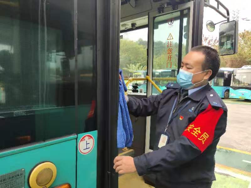 雖然每臺(tái)公交車出車前都要進(jìn)行清潔和消毒,但邱華還是有些不放心,他先把車上乘客容易觸碰到的扶手,用噴酒過消毒液的抹布再次抹了一遍,一切準(zhǔn)備妥當(dāng)后,才精神抖擻坐上自己的駕駛位。