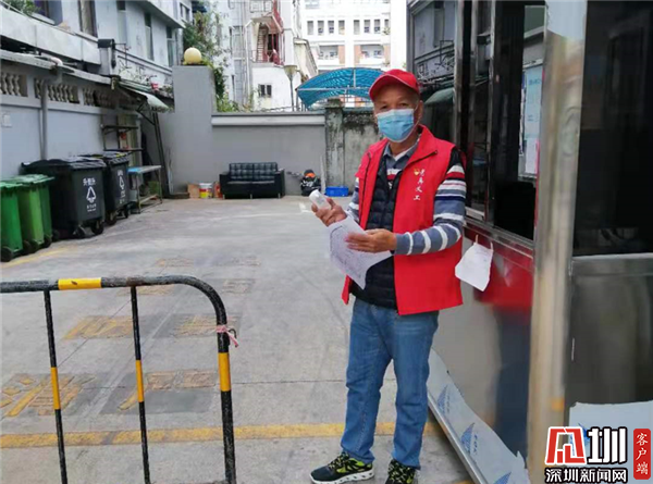 除自發(fā)捐款贈物外,退役軍人們還積極發(fā)揮街道退役軍人義工隊(duì)的力量。由于疫情防控原因,需要避免人員聚集,減少外出,老兵們想為疫情防控作貢獻(xiàn)卻找不到好的方法。“不外出不聚會,我們做好防護(hù),就待在自己住的小區(qū)里做貢獻(xiàn)?!笨紤]到近期返深人員逐漸增多,居民小區(qū)防疫工作任務(wù)越來越重,作為街道老兵義工隊(duì)的隊(duì)長,林貞輝在群里向老兵們發(fā)起這樣的倡議,“大家看到這個提議都很支持,想要參加,這樣既能為防疫作貢獻(xiàn),又減少傳染的風(fēng)險,戰(zhàn)友們都很高興。”