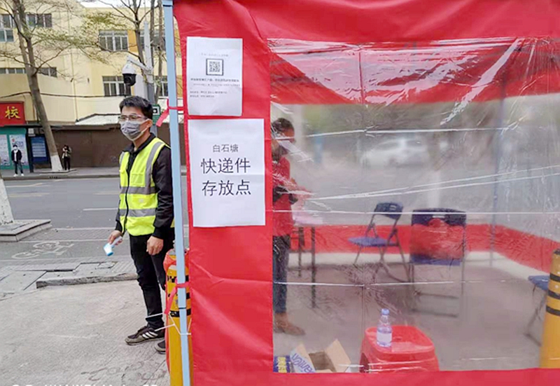 根據防控疫情的需要,坪地街道要求各社區(qū)在77個城中村、物業(yè)小區(qū)內,按照既方便群眾又無防控風險的原則,選定1-3個快遞、外賣集中收取點,并有專人看守,讓快遞員通知收件人下樓自取,對居家隔離人員由工作人員送至其門口,不能讓快遞員走樓入戶,防止交叉感染。集中收取點各社區(qū)可因地制宜,可以考慮圍合卡口的治安崗亭、居民小組辦公樓等區(qū)域。