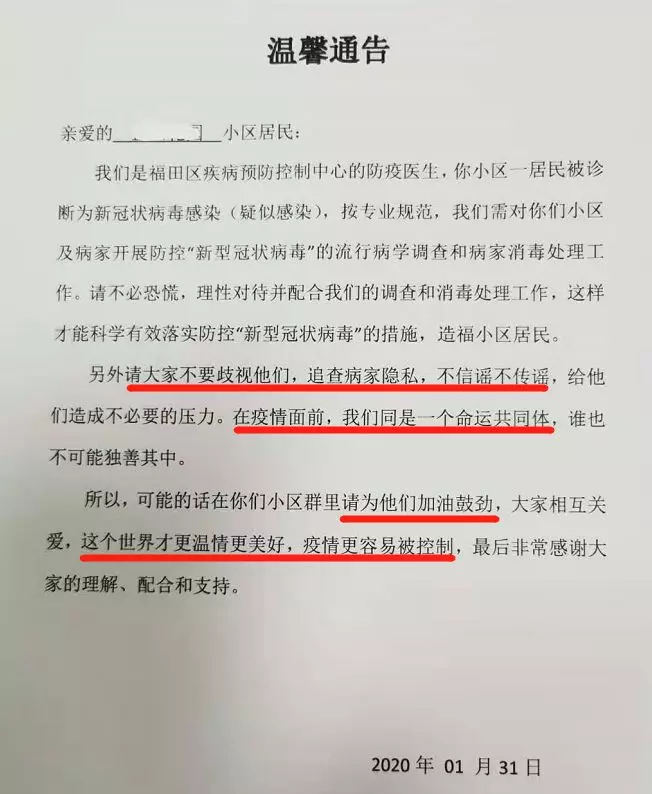 “疫情陰影下,深圳這個(gè)小區(qū)的通告溫暖了我……”