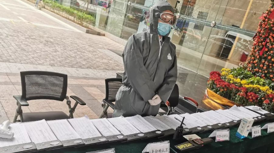 2月9日下午,記者來到梅林街道山水居小區(qū)實地探訪。進入小區(qū)前,所有進出人員都必須量體溫,正好來此調(diào)研的福田區(qū)委副書記黃曉鵬也不例外。