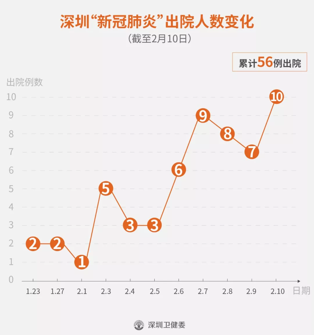 2月10日下午,經(jīng)專家組會(huì)診,深圳再有10名新型冠狀病毒肺炎確診患者出院,累計(jì)的出院者達(dá)56人。