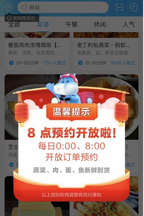 商品情況: app顯示品類齊全,水果蔬菜、肉禽單品、海鮮水產(chǎn)、熱食凍品等應有盡有。但庫存有限,市民爆料反饋,自己多次在該app提前預約第二天菜品,多次顯示預約已滿,無法購買。