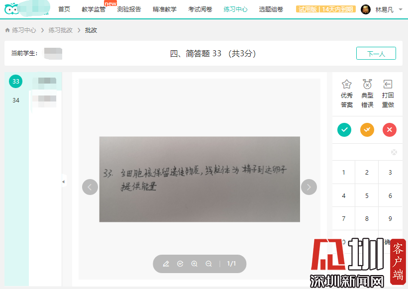 除了備課、上課外,如何及時完成布置作業(yè)、批改作業(yè)的工作也是線上授課的一個挑戰(zhàn)。深圳中學提前布局,配套了線上的智能教學系統(tǒng),讓同學們每天在線上完成作業(yè),從課后練習的角度保證了教學質量。課后教師們通過學校的智能教學平臺批改同學們的作業(yè),并通過微信等方式回答學生的問題。