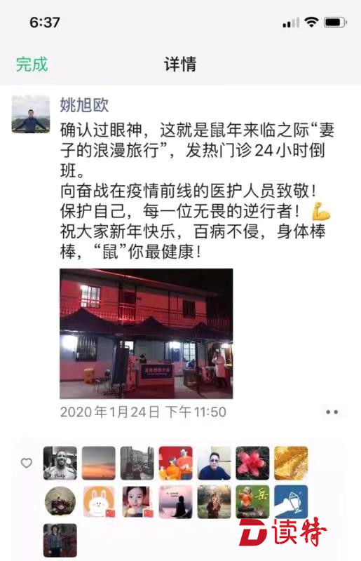 丘宇和姚旭歐兩人都是戰(zhàn)疫一線的衛(wèi)健系統(tǒng)雙職工,他們把對對方的關(guān)懷和愛意,在朋友圈表達(dá)得浪漫而動人。