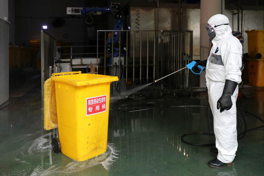 "醫(yī)療廢物的焚燒處置需要經(jīng)過一燃室950°C高溫、二燃室1100°C高溫,焚燒約30分鐘,才能達到無害化處置。"工作人員向深晚記者介紹,整個處置流程中,處置中心最大限度使用自動設備。與其他醫(yī)療廢物處理方式不同的是,涉及新型冠狀病毒的醫(yī)療機構必須貼上"高度感染性廢物"標識。處置全程禁止打開周轉桶蓋,以此杜絕醫(yī)療廢物對員工的感染風險。