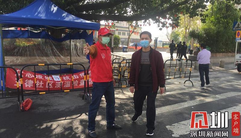 在龍崗區(qū)吉華街道三聯(lián)村村口的黨員先鋒崗,76歲的老黨員、玉雕師王樹(shù)勛身穿義工服、手持體溫計(jì),一絲不茍地為進(jìn)出村里的人測(cè)量體溫。王樹(shù)勛年前不慎扭傷了腳,正在家休養(yǎng)。但是一聽(tīng)說(shuō)社區(qū)需要志愿者,他就第一個(gè)站了出來(lái)?!包h員在有需要時(shí)必須要上!能夠在國(guó)家需要我時(shí)挺身而出,是我的榮耀!”