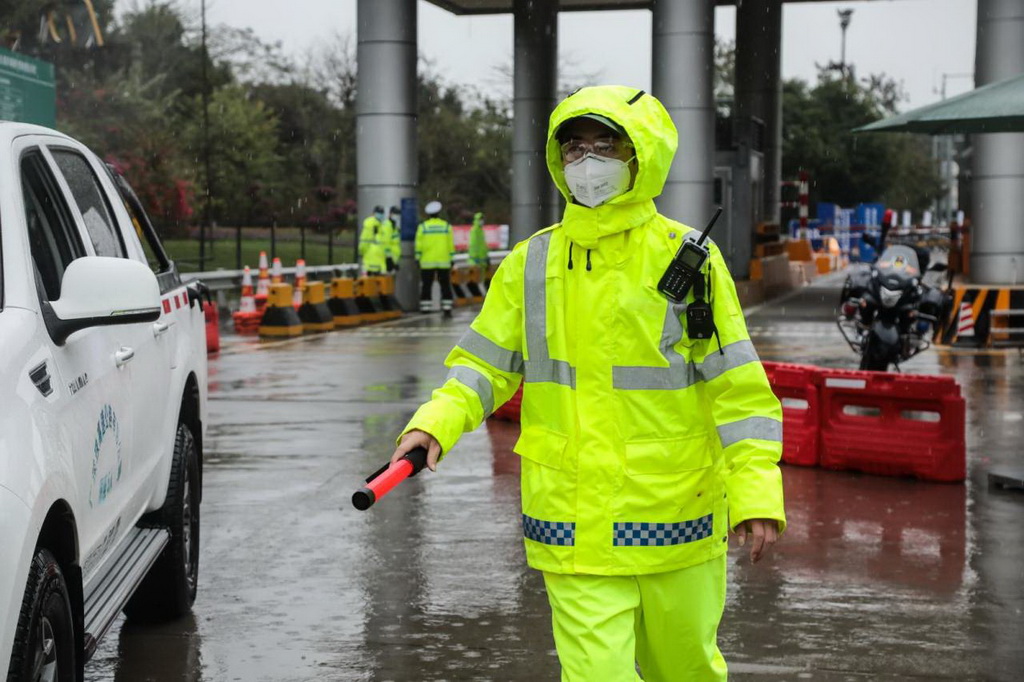 深圳交警執(zhí)勤民警雨中戰(zhàn)疫