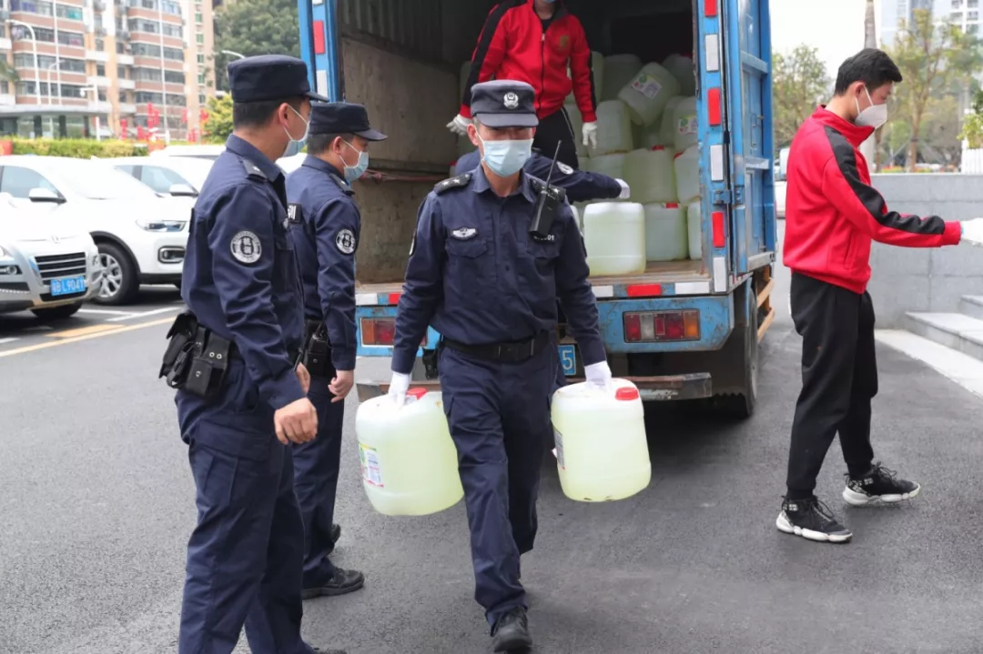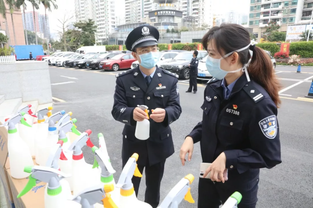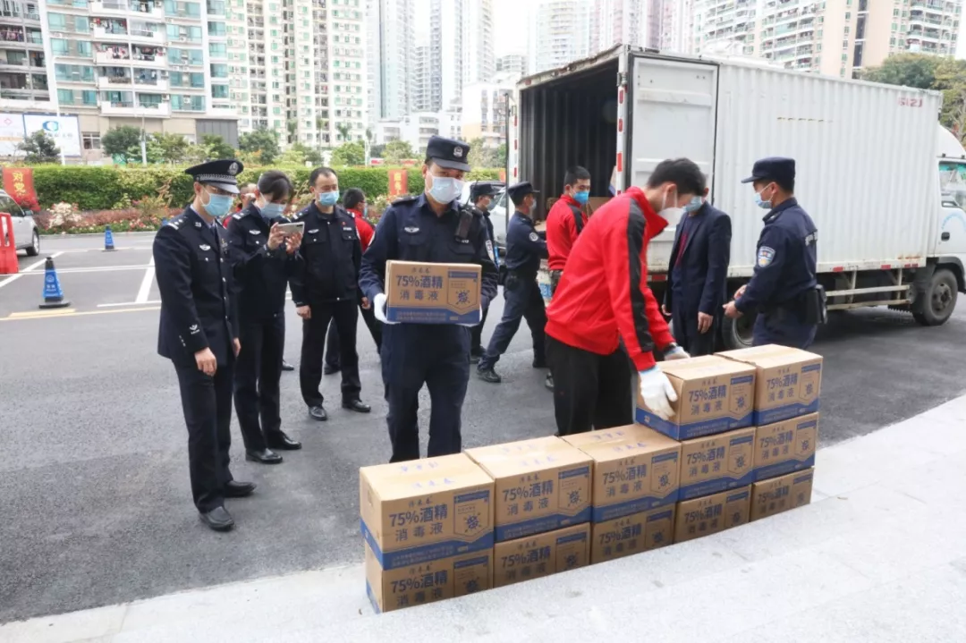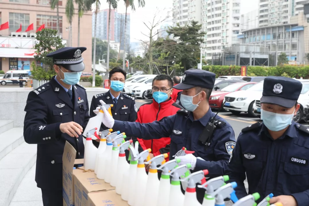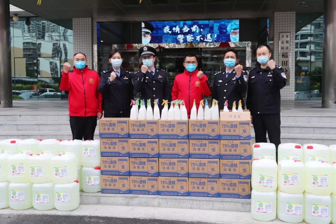 當(dāng)天16時(shí)許,愛心企業(yè)代表肖先生帶著50桶20公斤消毒液、480瓶消毒酒精、20個(gè)噴壺來到了福田分局,捐贈(zèng)給了福田警方。福田分局黨委委員、政治處主任桂禮強(qiáng)代表分局接收捐贈(zèng)抗疫物資,并對(duì)愛心企業(yè)表示感謝。