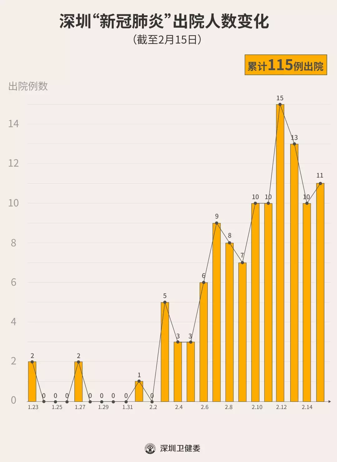 2月15日下午,經(jīng)專家組會診,深圳再有11名新型冠狀病毒肺炎確診患者出院,累計達115人。