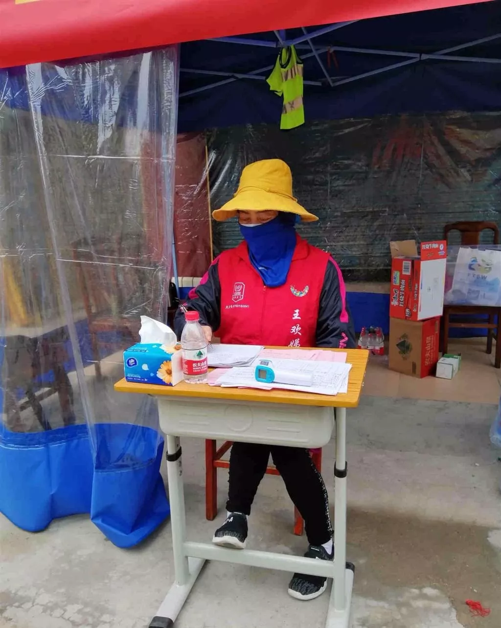 在龍崗區(qū)平湖街道力昌社區(qū)防控防疫卡點,一名身著紅馬甲的志愿者忙個不停。雖然她的臉被口罩、帽子遮得嚴嚴實實,但紅馬甲上寫著得三個大字透露了她的身份:王歡娣。