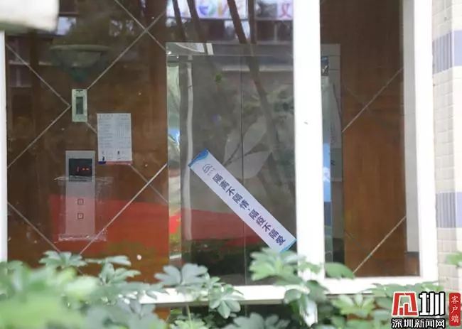 深圳南山一小區(qū)單元出入口,隔著玻璃看去,電梯上的封條寫著“隔離不隔情、隔疫不隔愛(ài)”的溫馨提示。