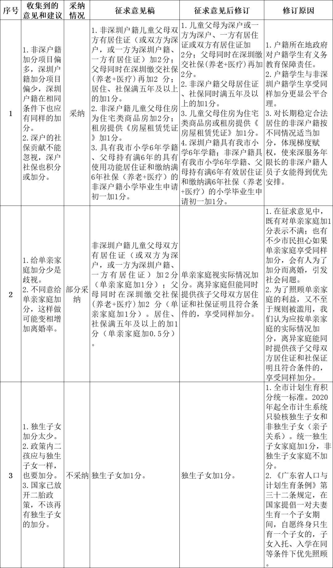 據(jù)了解,1月13日-24日,《羅湖區(qū)義務(wù)教育學(xué)位申請(qǐng)分類和積分辦法(征求意見(jiàn)稿)》在“羅湖政府在線”和“羅湖教育應(yīng)用網(wǎng)”公開(kāi)征求公眾意見(jiàn)期間,共計(jì)收集市民意見(jiàn)和建議共205條。其中郵件106封,信函2件,電話97個(gè)。經(jīng)過(guò)梳理,區(qū)教育局將比較具有普遍性、代表性的意見(jiàn)和建議進(jìn)行了研究分析,對(duì)合理化意見(jiàn)和建議予以采納。