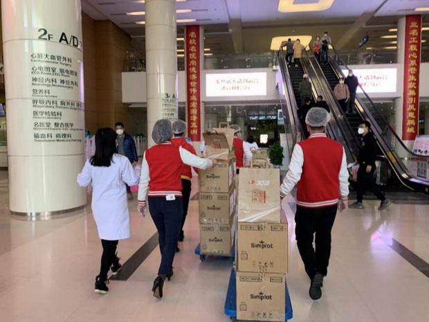 蔡麗麗與堅(jiān)守營(yíng)運(yùn)一線的伙伴們?yōu)榭挂咭痪€的醫(yī)護(hù)人員送去愛心餐食。