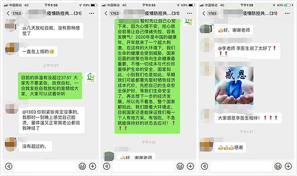 據(jù)介紹,心理服務(wù)小組根據(jù)不同服務(wù)對(duì)象,靈活提供多樣化的可及性心理服務(wù),包括家庭團(tuán)體心理服務(wù)、一對(duì)一個(gè)案咨詢、線上課堂、線上答疑等,具體服務(wù)內(nèi)容有:為確診冠狀病毒感染的病人及家屬提供線上一對(duì)一心理咨詢及家庭團(tuán)體心理服務(wù);關(guān)注社區(qū)一線的工作人員,為“三位一體”工作群、網(wǎng)格員工作群、醫(yī)護(hù)人員工作群、黨群干部工作群等一線工作人員提供“安心防疫心理手冊(cè)”線上課堂,視頻講解“安心”防疫工作;為工作強(qiáng)度大、情緒壓力大的一線人員開展線上減壓團(tuán)體活動(dòng)及個(gè)體咨詢服務(wù);在專業(yè)的精神衛(wèi)生專家的指導(dǎo)下,聯(lián)合各社區(qū)的精訪社工,為社區(qū)有精神疾病的病人及家屬提供線上心理復(fù)康指導(dǎo)及心理咨詢服務(wù);開通三條心理服務(wù)熱線,為居家隔離的人群提供線上電話咨詢服務(wù)及微信群線上答疑及文字咨詢活動(dòng)。