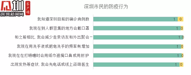 2020年2月9日-11日,深圳疾病預(yù)防控制中心聯(lián)合深圳大學(xué)傳播學(xué)院開展了《深圳市民新冠肺炎調(diào)查》。在三天時(shí)間內(nèi)共回收到8179份有效答卷。結(jié)果顯示,深圳市民對(duì)于新冠肺炎知識(shí)的了解程度達(dá)到了較高水平。近8成受訪市民對(duì)疫情發(fā)展持積極態(tài)度,超9成受訪市民能做好自我防護(hù),對(duì)于病原、疾病的典型癥狀、傳染源特征、洗手的有效預(yù)防性,以及高危人群特征也均超過(guò)了95%。
