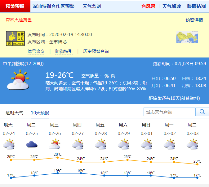 深圳今日最高溫26℃,森林火險黃色預警持續(xù)生效中