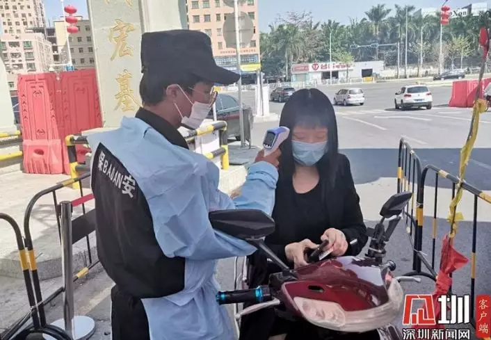 市民進入社區(qū)需測量體溫。路上的車輛較前幾日漸漸增多。