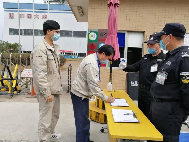 位于福城街道的大唐寶昌燃氣發(fā)電公司有序復工復產(chǎn),員工進出園區(qū)測溫登記。