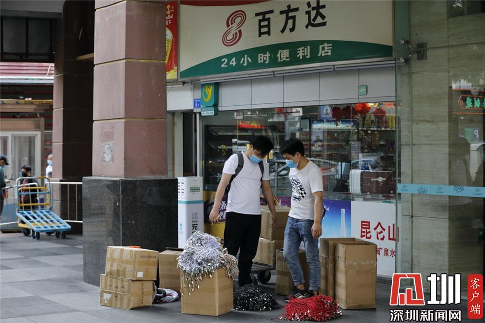 華強(qiáng)北,兩位正在搬運(yùn)貨物的人。