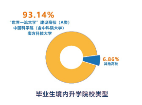 而境內升學中,去往雙一流高校以及中國科學院(含中科院大學)、南科大的畢業(yè)生占了絕大部分。其中,到清華大學和北京大學升學的共計13人,7人攻讀碩士學位,6人攻讀博士學位。