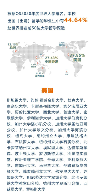 從本科畢業(yè)生升學情況來看,有超六成同學選擇了境外留學,其中四成為直博。在2019屆畢業(yè)生里,直博人數為144人,占全體畢業(yè)生近20%。