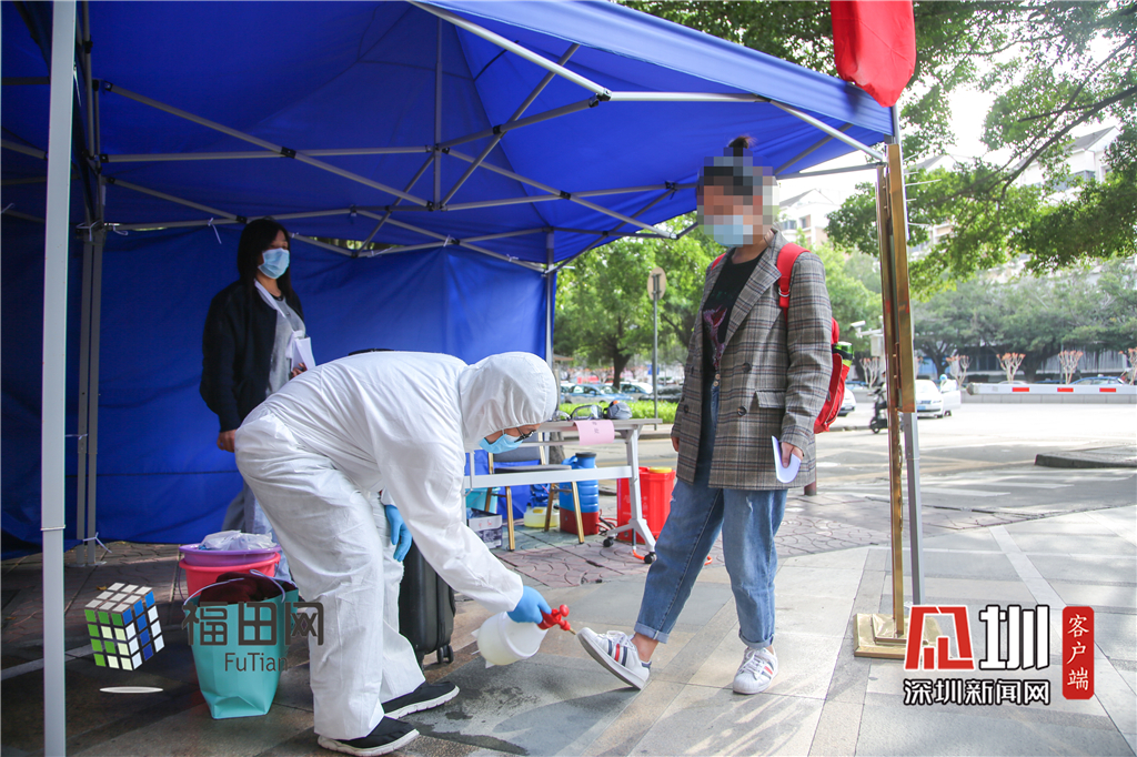 駐點(diǎn)的消殺公司專(zhuān)業(yè)人員對(duì)疫情高發(fā)區(qū)返深人員隨身物品進(jìn)行消殺。