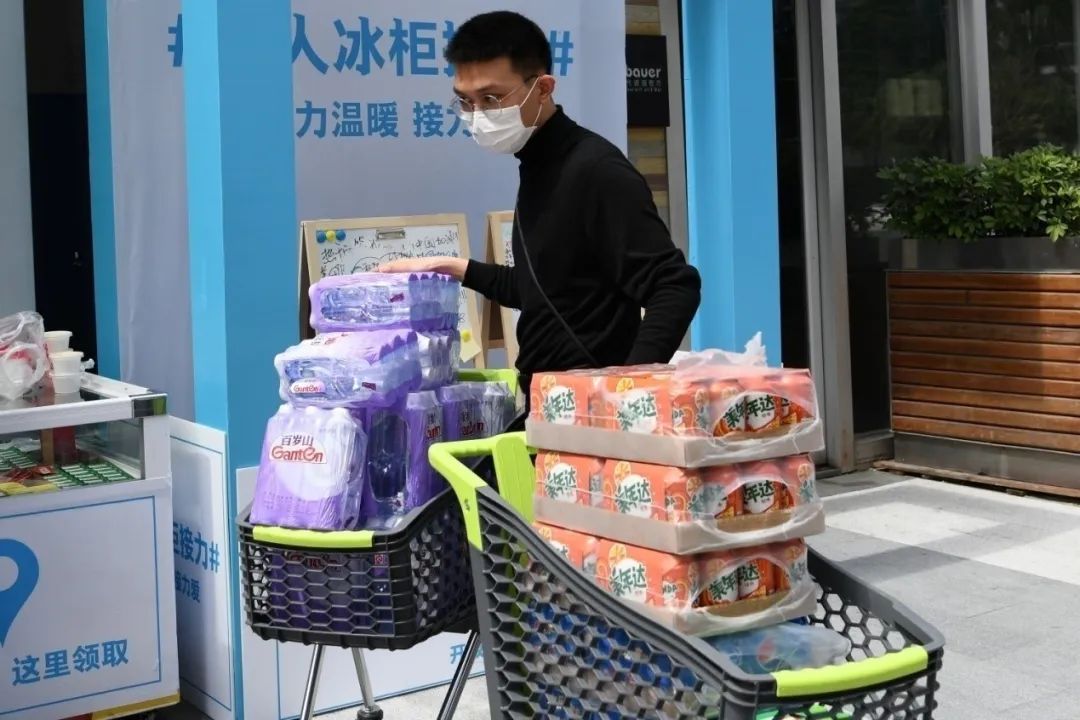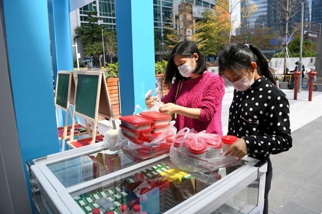 一瓶飲料、一份盒飯、一個(gè)口罩,在這個(gè)特殊的時(shí)期,展示了這個(gè)城市的溫暖。(新華社記者 趙瑞希 梁旭 攝)