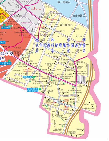 2.初中部與觀瀾第二中學(xué)(丹湖居委會(huì)、新城居委會(huì)、四和居委會(huì))及龍華區(qū)教科院附屬學(xué)校初中部共享學(xué)區(qū)范圍;丹湖居委會(huì)、新城居委會(huì)、四和居委會(huì)的適齡兒童和少年可選擇申請(qǐng)龍華區(qū)第三外國(guó)語(yǔ)學(xué)校初中部、觀瀾第二中學(xué)其中一所學(xué)校學(xué)位;福安居委會(huì)、悅興圍居委會(huì)、瓏門(mén)的適齡兒童和少年可選擇申請(qǐng)龍華區(qū)第三外國(guó)語(yǔ)學(xué)校初中部、龍華區(qū)教科院附屬學(xué)校初中部其中一所學(xué)校學(xué)位。