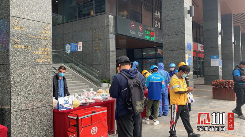 目前,人員用餐還是以外賣為主,科興科學園的美食街除了服務本園區(qū)外,也為周邊人員提供用餐服務。園區(qū)鼓勵大家盡量線上點餐,由相關(guān)人員下樓統(tǒng)一取餐,再分散自行用餐,避免人員聚集。