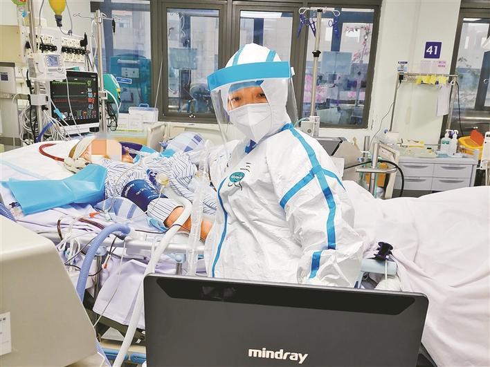 疫情早期,形勢(shì)嚴(yán)峻,隨著確診病人一批批收治,重癥病房很快進(jìn)入超負(fù)荷狀態(tài)?!白罡叻宓臅r(shí)候,我們接診了40多名患者,整個(gè)ICU病房都住滿了。重癥、危重癥患者有個(gè)特點(diǎn),就是病情變化特別快,一兩個(gè)小時(shí)病患的情況就差很遠(yuǎn),這就要求我們必須時(shí)刻嚴(yán)密監(jiān)測(cè)。因此,每次在班上,我都處于高度緊張的狀態(tài),不停地要去觀察分析各種數(shù)據(jù),要及時(shí)對(duì)患者治療進(jìn)行調(diào)整,加上穿著厚厚的防護(hù)服,處于缺氧狀態(tài),有時(shí)候確實(shí)感覺(jué)到蠻累的?!倍@樣超速運(yùn)轉(zhuǎn)的值班,一直持續(xù)了一個(gè)多月。