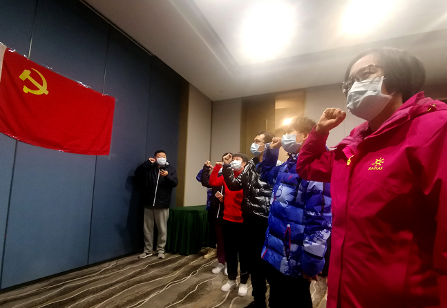 見(jiàn)圳客戶端·深圳新聞網(wǎng)2020年3月9日訊  3月9日晚7時(shí)30分,廣東省支援荊州醫(yī)療隊(duì)組織新黨員入黨宣誓活動(dòng)。深圳邊檢總站醫(yī)療隊(duì)和北大深圳醫(yī)院醫(yī)療隊(duì)分別在荊州市第一人民醫(yī)院分會(huì)場(chǎng)和監(jiān)利縣廣東醫(yī)療隊(duì)駐地酒店分會(huì)場(chǎng)組織黨員參加了宣誓活動(dòng)。經(jīng)廣東省支援荊州醫(yī)療隊(duì)臨時(shí)黨委批準(zhǔn),來(lái)自深圳邊檢總站醫(yī)院醫(yī)療隊(duì)的護(hù)士許梅與來(lái)自北大深圳醫(yī)院的護(hù)士曹慧敏、趙晨曦作為新黨員火線入黨。