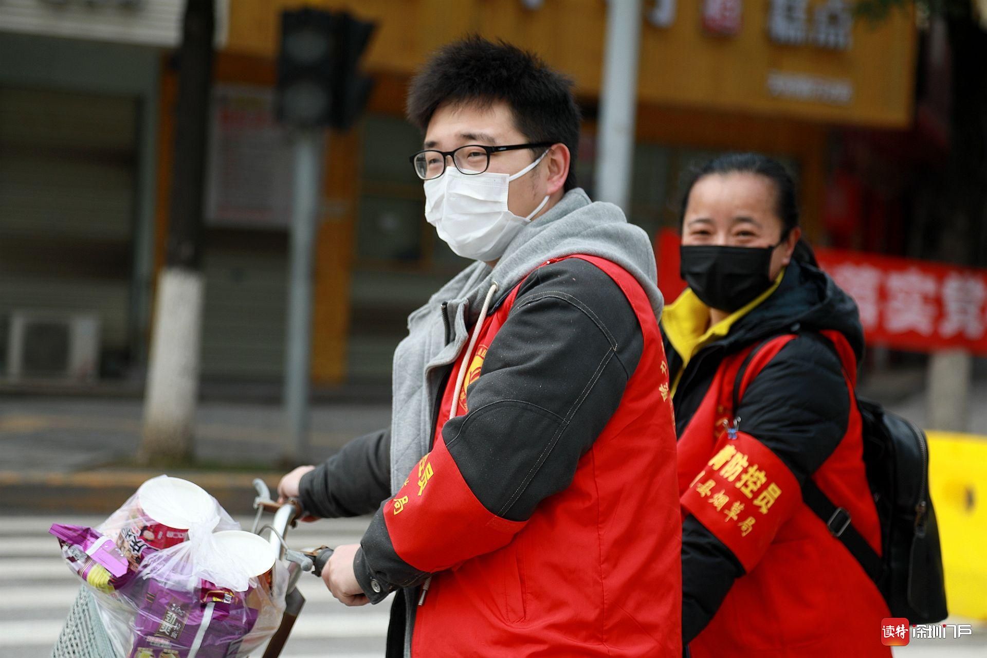 3月6日,監(jiān)利,為群眾送方便面的代購員。
