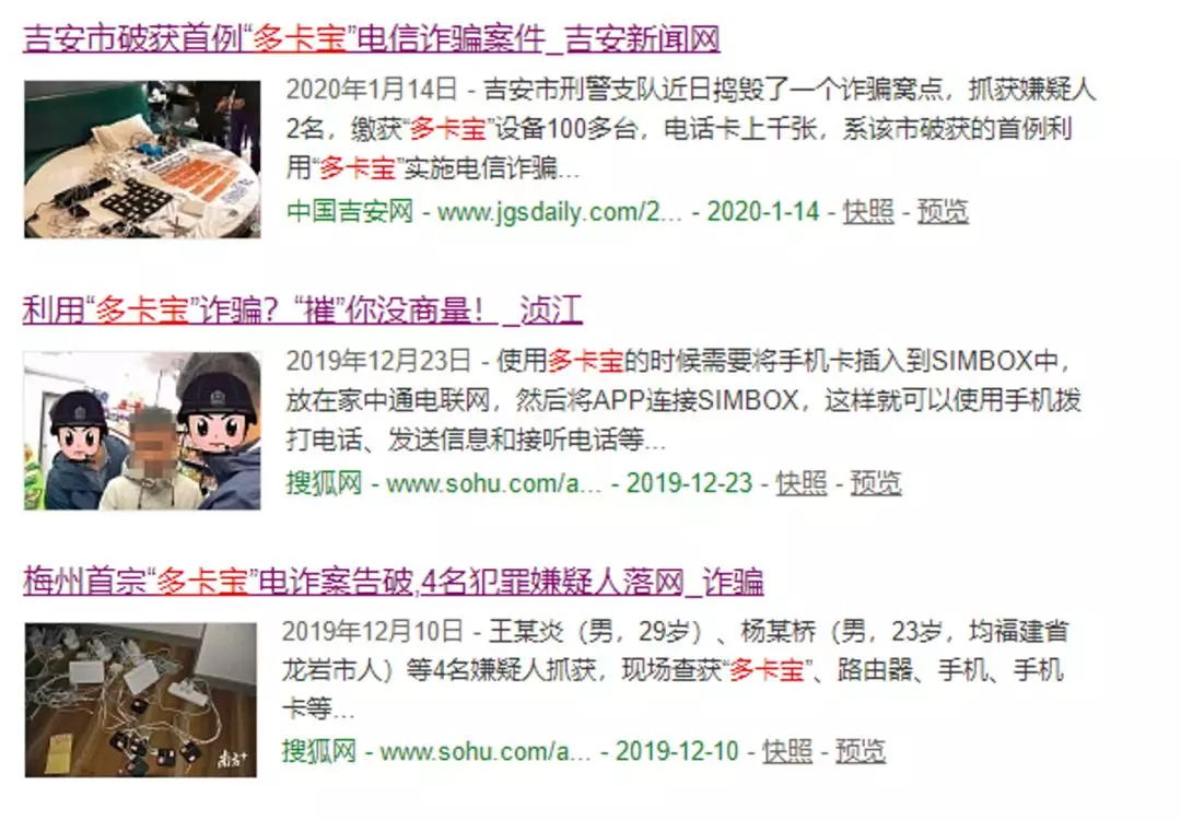 (各地警方打擊的“多卡寶”詐騙案)