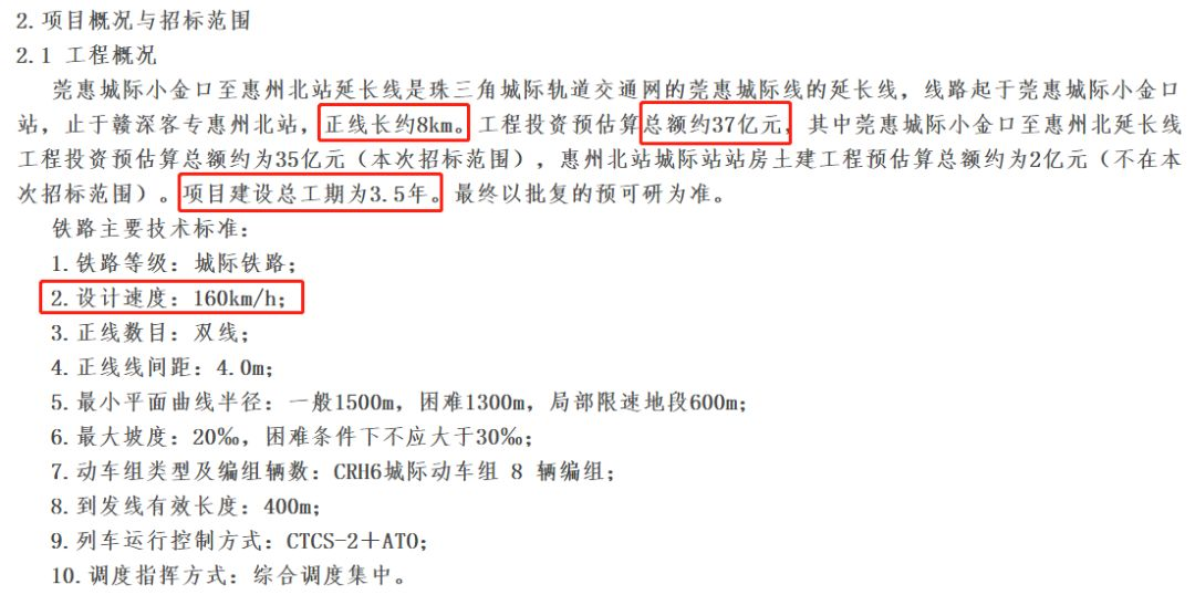 此間公示的莞惠城際小金口至惠州北站延長線,則是珠三角城際軌道交通網(wǎng)的莞惠城際線的延長線,線路起于莞惠城際小金口站,止于贛深客?;葜荼闭荆€長約8km,設(shè)計速度為160km/h。工程投資預(yù)估算總額約37億元,其中莞惠城際小金口至惠州北延長線工程投資預(yù)估算總額約為35億元(本次招標范圍),惠州北站城際站站房土建工程預(yù)估算總額約為2億元(不在本次招標范圍)。