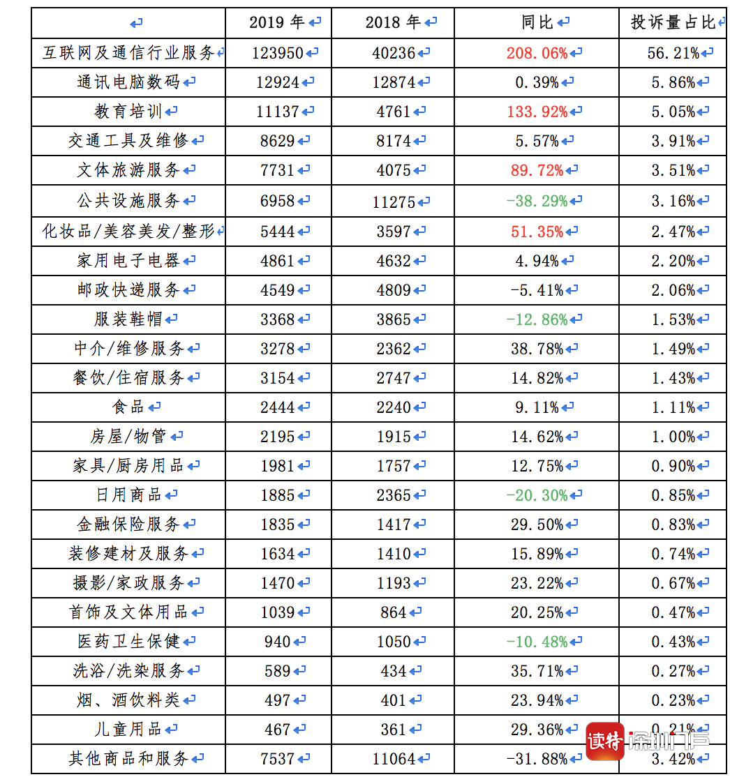 去年消費(fèi)投訴超22萬(wàn)宗 互聯(lián)網(wǎng)及通信行業(yè)服務(wù)投訴量增幅超2倍