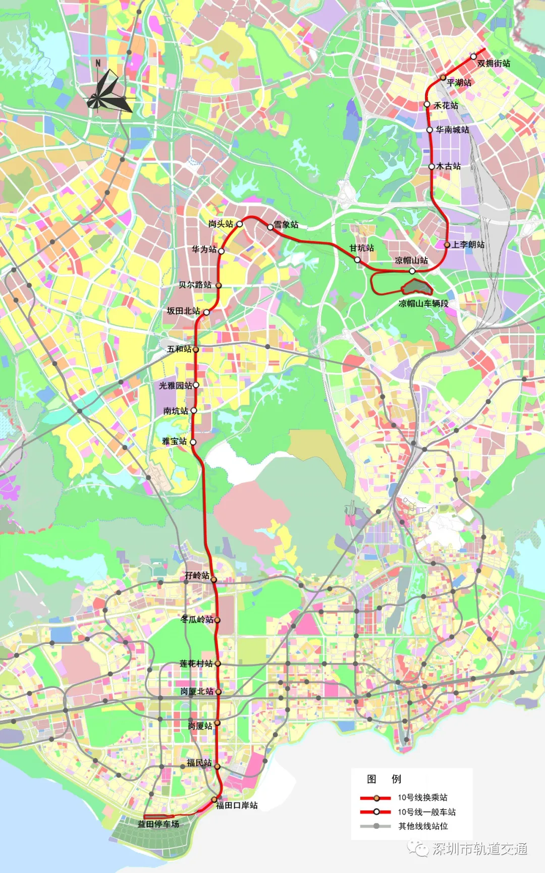 地鐵10號(hào)線屬于深圳市軌道交通三期工程項(xiàng)目,南連與香港毗鄰的福田口岸站,北接龍崗區(qū)的平湖樞紐,全長約29公里,跨福田、龍華、龍崗,設(shè)站24座。
