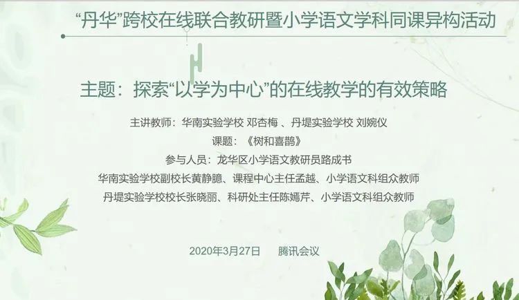 “丹華”跨校在線聯(lián)合教研 線上語文課堂展魅力