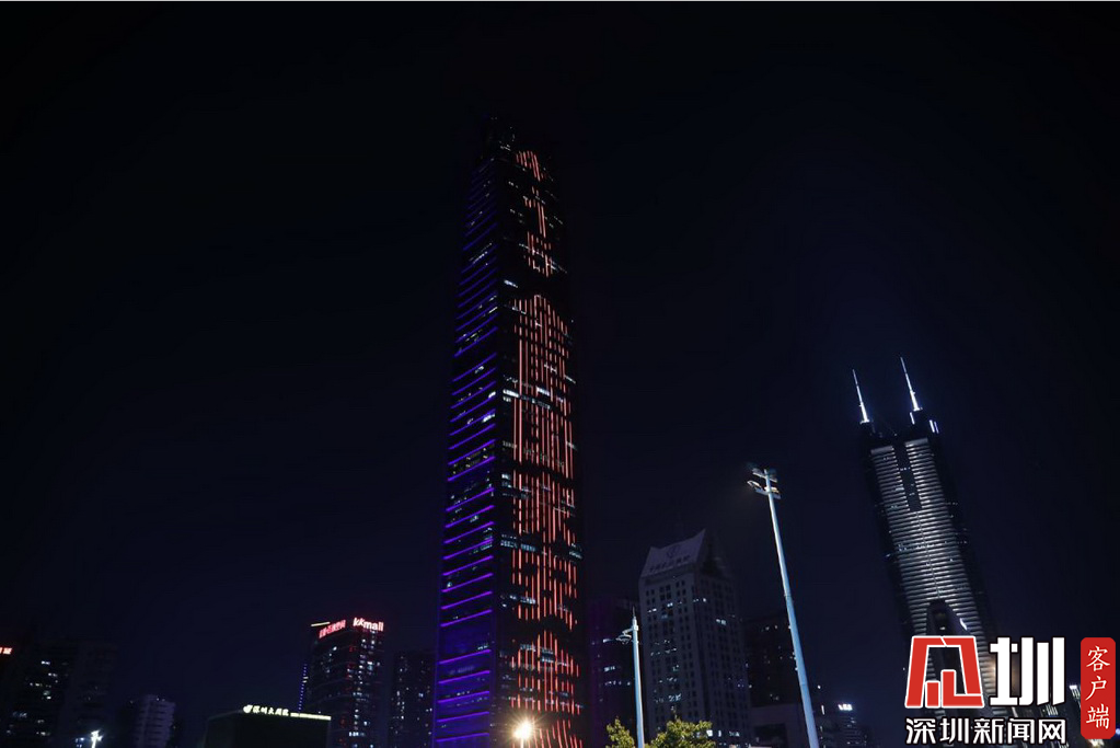 另一個(gè)角度的京基100,建筑外體亮出“41全國(guó)國(guó)家安全教育日”字眼。