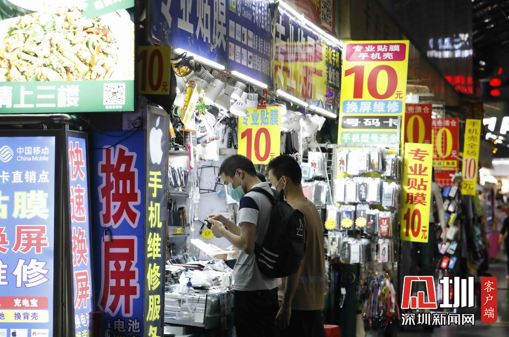 東門步行街的手機(jī)配件門店前,兩位市民正在選購。