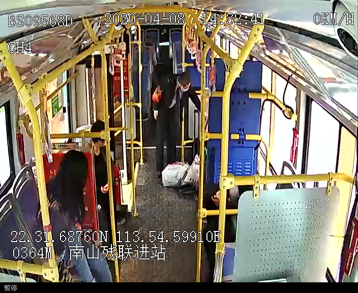 4月8日下午,67歲的李女士在廣中醫(yī)深圳醫(yī)院站乘坐深圳巴士集團(tuán)四分公司前海車隊(duì)M364線粵B09568D車前往南山村西站。在當(dāng)天下午14時(shí)31分,當(dāng)班駕駛員曹利平駕駛著車輛進(jìn)入南山殘聯(lián)站時(shí),聽到有乘客在車上的呼喊聲,發(fā)現(xiàn)坐在后門附近座位上的李女士陷入暈厥,就連隨身的買菜的手拉車車滑倒至后門踏板處造成的聲響和旁邊乘客的呼喊提醒聲也沒有聽見。由于擔(dān)心老人家的身體狀況,曹師傅走到李女士身邊多次呼喚,直到她清醒過來。