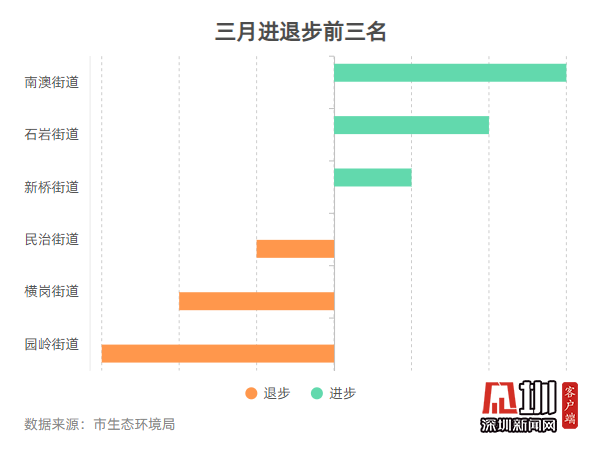 2020年一季度各街道數(shù)據(jù)顯示,桃源街道、黃貝街道和南湖街道空氣質量排名始終保持在前十位,而馬田街道、新安街道、觀瀾街道、福城街道、筍崗街道、沙河街道、華強北街道和沙井街道空氣質量排名連續(xù)三次墊底。
