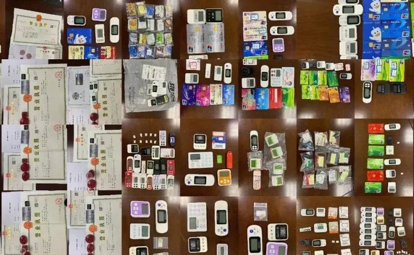 ▲民警繳獲的銀行卡,手機(jī)卡等作案工具