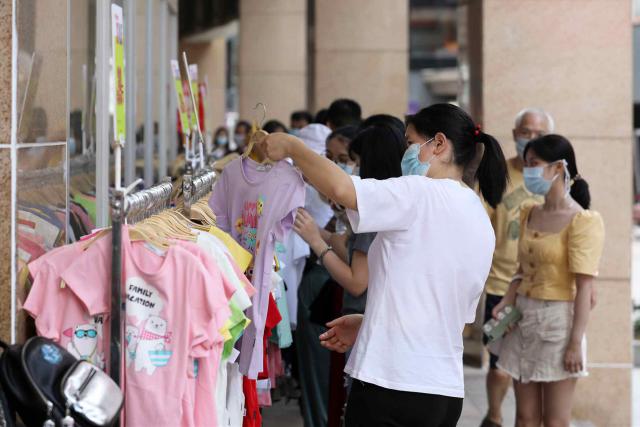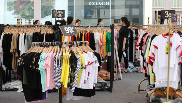 ▲夏季服裝開售,不少商家打折促銷,吸引市民選購。
