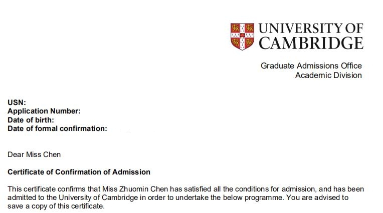 見圳客戶端·深圳新聞網(wǎng)2020年5月9日訊(記者 陳彬)近日,深圳第二外國語學(xué)校2013屆畢業(yè)生陳卓敏收到一封來自世界頂尖高等學(xué)府英國劍橋大學(xué)的錄取通知書。她本科在國際頂尖高校蒙納士大學(xué)(2020QS世界大學(xué)排名第58位)就讀,2019年以一等榮譽學(xué)位和滿分績點被劍橋大學(xué)研究型碩士(準博士)錄取。