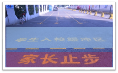 校門口還設(shè)置了,入校緩沖區(qū),家長(zhǎng)止步區(qū),三色地貼!請(qǐng)家長(zhǎng)們止步!孩子們可以循著地貼,走向?qū)儆谧约旱纳释ǖ溃?/p>