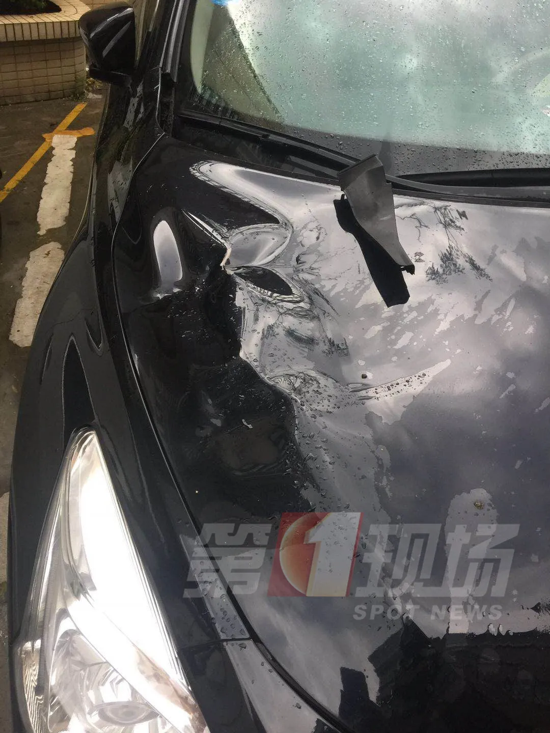 砸中他車的前引擎蓋