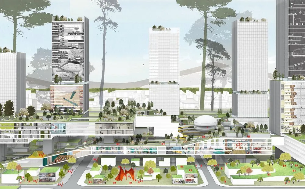 南山科技創(chuàng)新中心是一個以公共交通為導(dǎo)向而開發(fā)的(TOD)項目,它從不同層面同未來的大型交通樞紐西麗高鐵站建立理想連接,并直接得益于這個驅(qū)動深圳經(jīng)濟發(fā)展的新引擎。