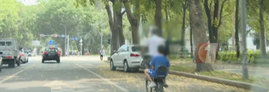 5月12日下午,在南山外國語學(xué)??圃沸W(xué)與南山外國語學(xué)校中間路段,一位老人騎電單車,載著一名小學(xué)女生,沿著高新南環(huán)路由西往東方向行駛。